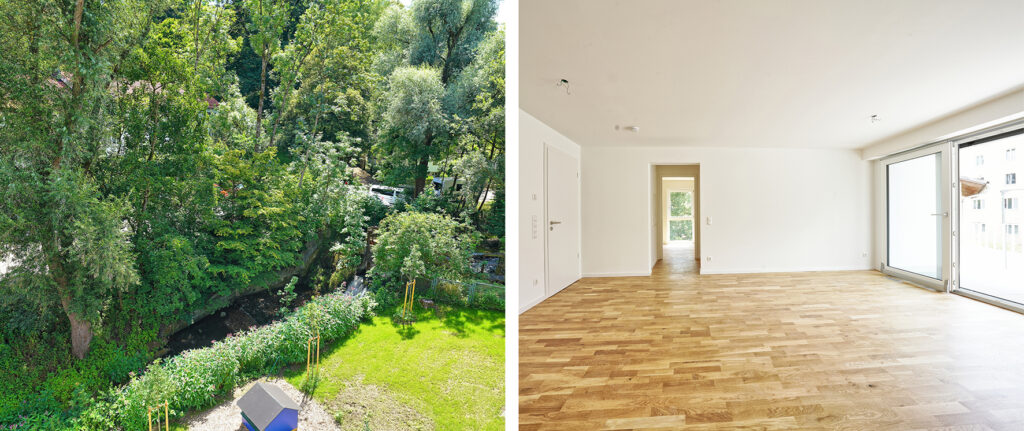 Eingerahmt von Mühl- und Wuhrbach sowie in unmittelbarer Nähe zum Inn, bietet das Wohngebiet zahlreiche Möglichkeiten zur Erholung und Freizeitgestaltung in der Natur. Spaziergänge, Radtouren oder einfach die Ruhe des Wassers genießen – hier finden Sie Ihre persönliche Oase.