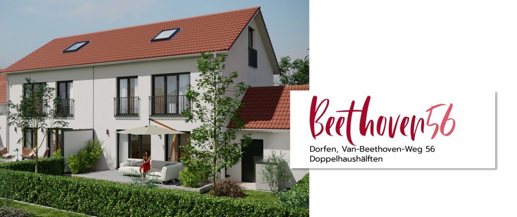 Die modernen Doppelhaushälften des „Beethoven56“ vereinen zeitgemäßes Design mit höchstem Wohnkomfort und bieten den perfekten Ort zum Leben. Hochwertige Materialien und eine durchdachte Architektur schaffen ein stilvolles Ambiente, das keine Wünsche offenlässt. Großzügige Fensterflächen fluten die Räume mit Tageslicht und sorgen für eine warme, einladende Atmosphäre. Der offene Wohn- und Essbereich bietet viel Platz für gesellige Abende mit Familie und Freunden, während die eleganten Badezimmer mit begehbarer Dusche und Badewanne eine Oase der Entspannung sind. Jede Doppelhaushälfte verfügt über eine Terrasse mit Garten – perfekte Rückzugsorte, um die Natur zu genießen. Ein Zuhause im „Beethoven56“ bedeutet nicht nur modernes Wohnen, sondern eine Investition in Lebensqualität.