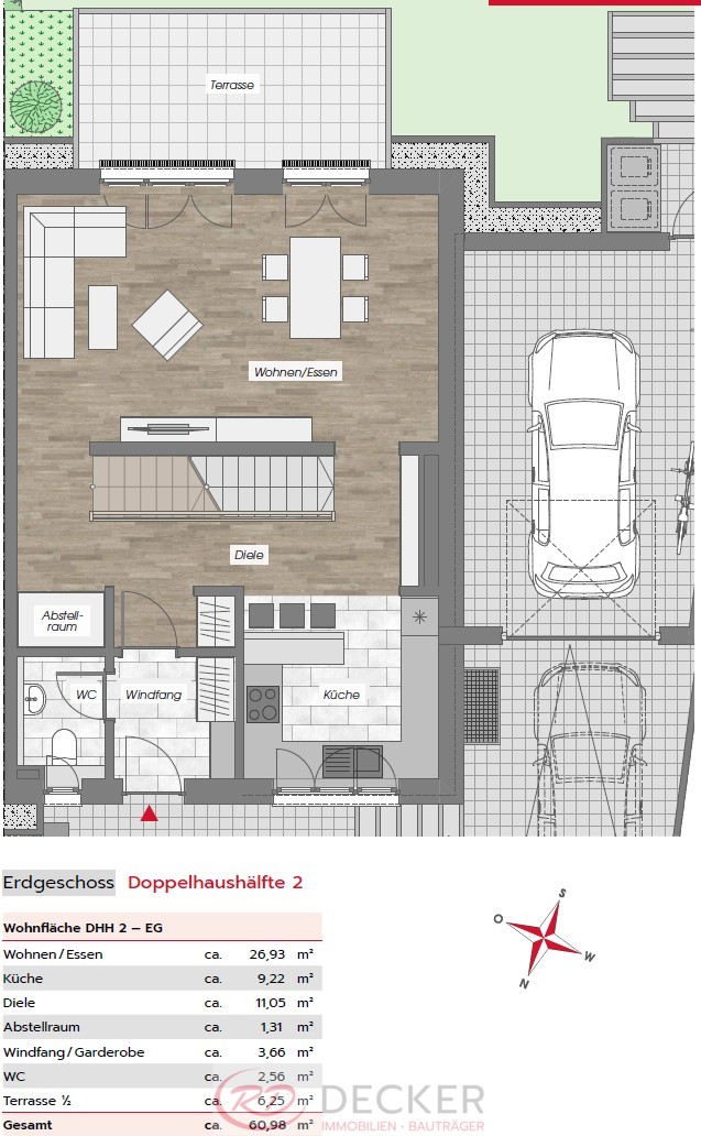 - Je Doppelhaushälfte 1 Garagen- und 1 Außenstellplatz