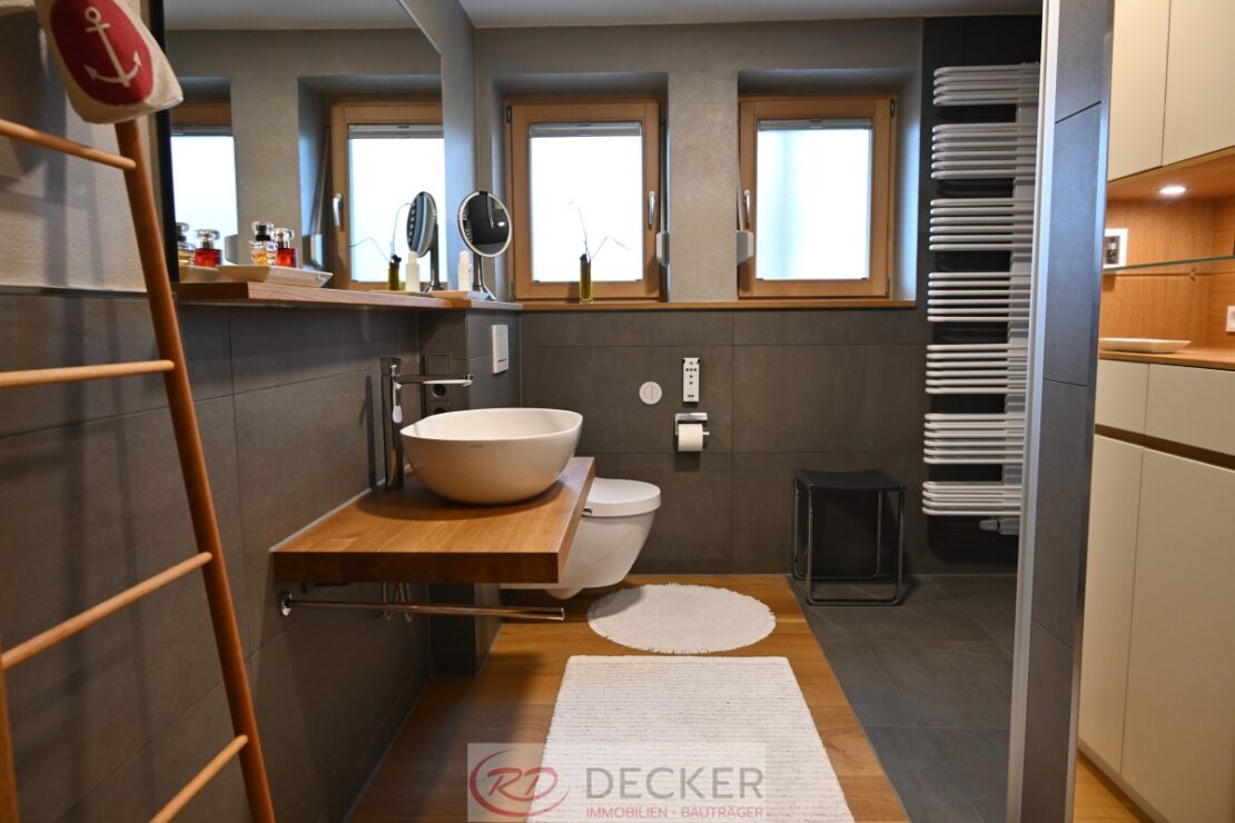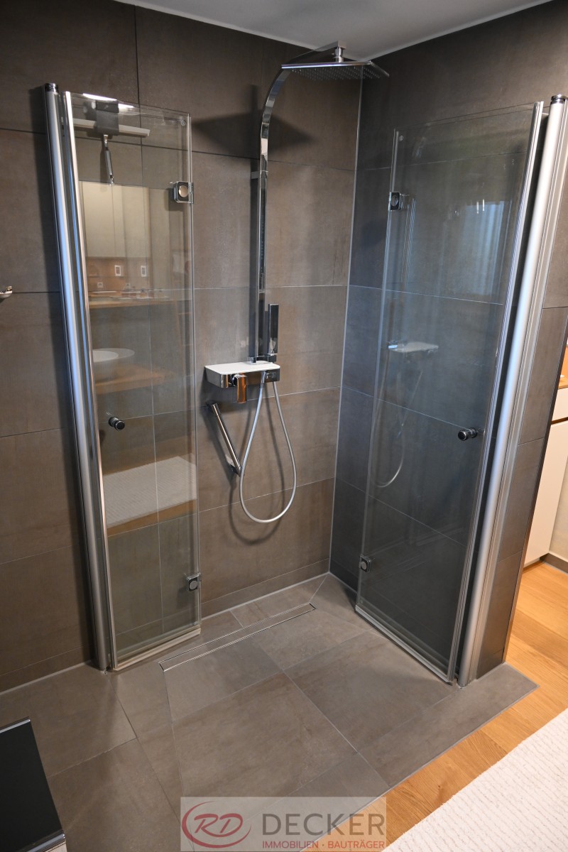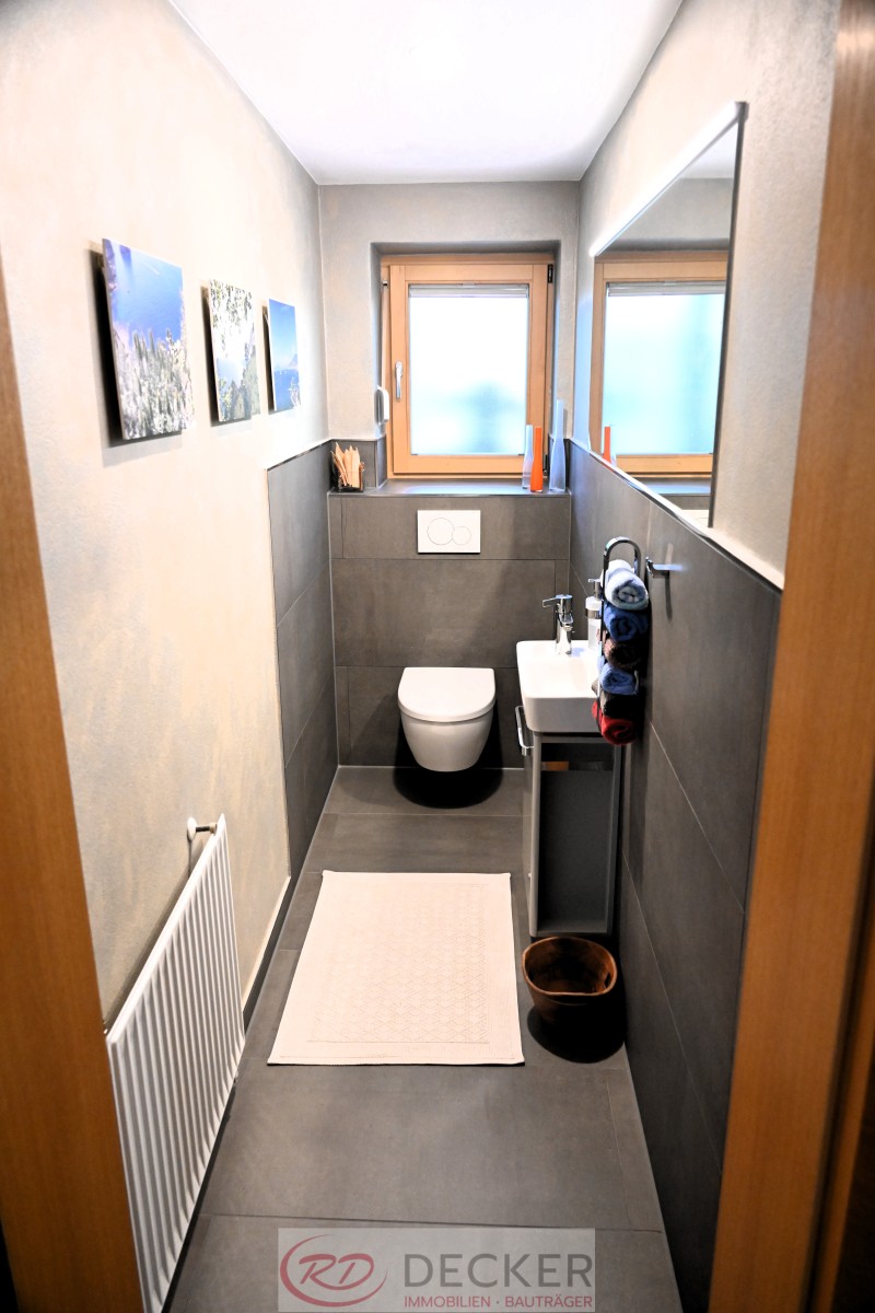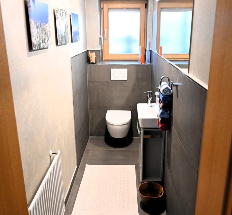 Ebenfalls vom Flur aus erreichen Sie den angrenzenden, südlichen Wintergarten, der zu jeder Jahreszeit ein gemütlicher Rückzugsort ist. Auf derselben Ebene befinden sich ein separates Gäste-WC sowie ein modernes Duschbad mit WC, beide Bäder wurden im Jahr 2017 komplett renoviert und im Hinblick auf Barrierefreiheit auf den neuesten Stand gebracht.