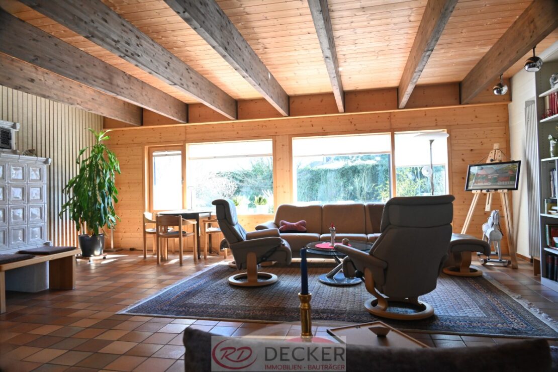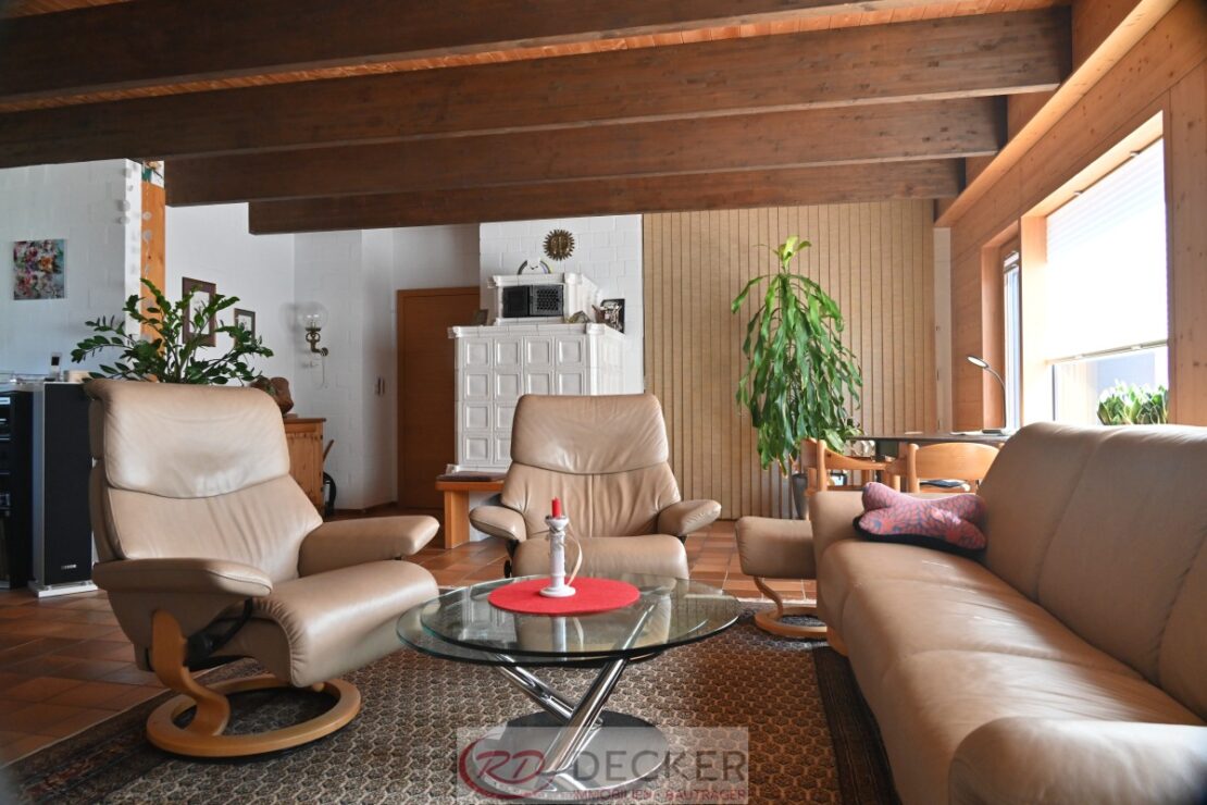 Das großzügig geschnittene Wohnzimmer mit Essbereich punktet durch seine Helligkeit und sein behagliches Ambiente, zu dem auch ein schöner Kachelofen beiträgt. Eine integrierte Fußbodenheizung sorgt für angenehme Wärme. Von hier aus gelangen Sie über einen Wintergarten auf die große, sonnige Südterrasse mit teilweiser Glasüberdachung und ferngesteuerter Markise – ideal zum Entspannen im Freien. Vom Wohnzimmer aus erreichen Sie über einen kleineren Wintergarten die Westterrasse, die Ihnen die Abendsonne genießen lässt.