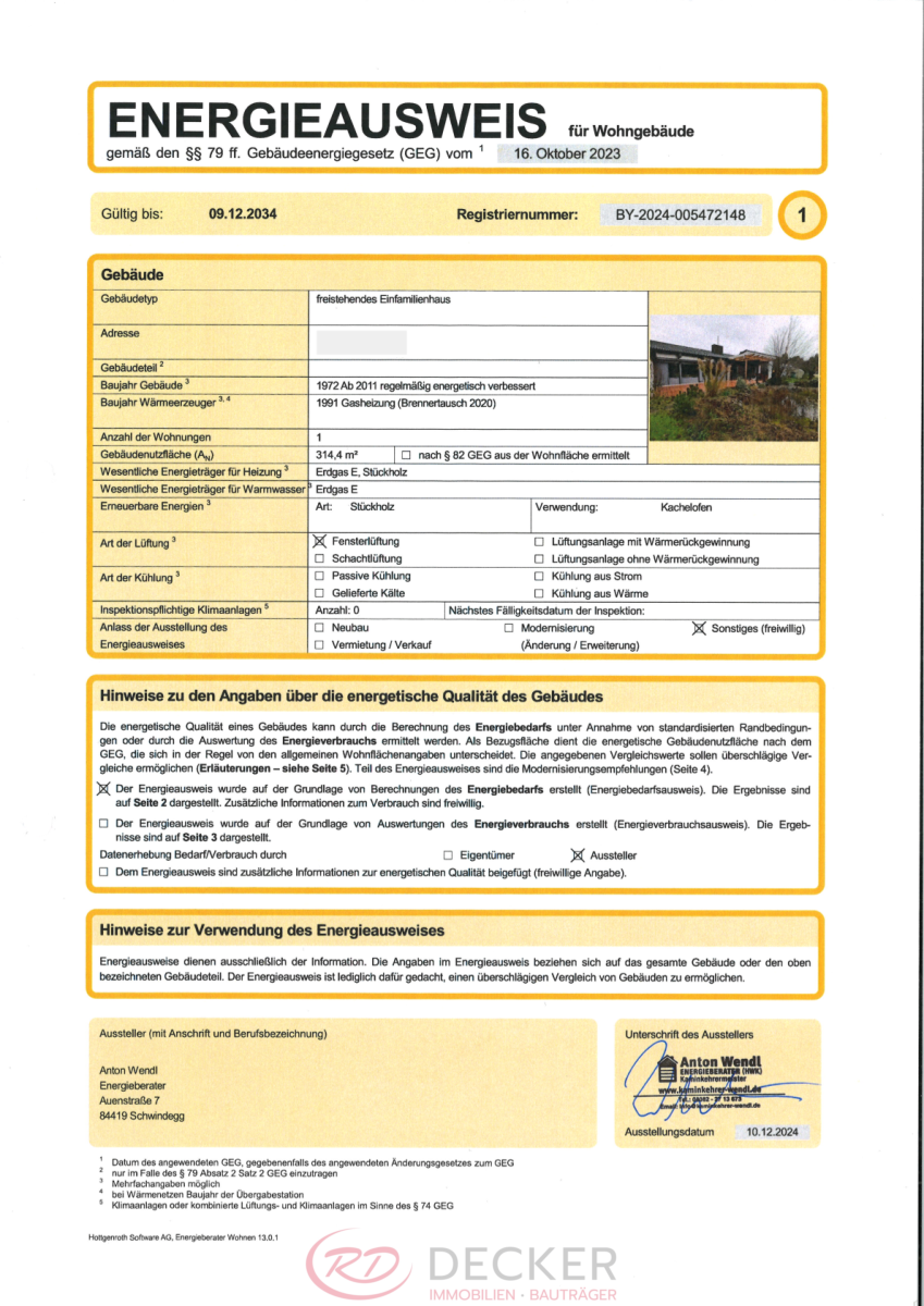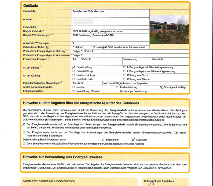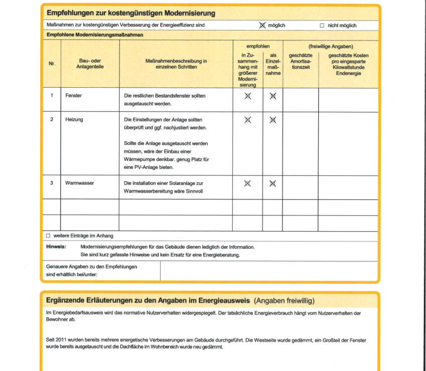 Beheizt wird das Haus durch eine Heizung, welche im Jahr 2006 auf Gas umgestellt wurde. Im Zuge energetischer Verbesserungen wurden 2014 überwiegend 3-fach-verglaste Fenster eingebaut (gedämmte Pfosten-Riegel-Konstruktion). Lediglich in einem Schlafzimmer sind noch ältere Fenster vorhanden.