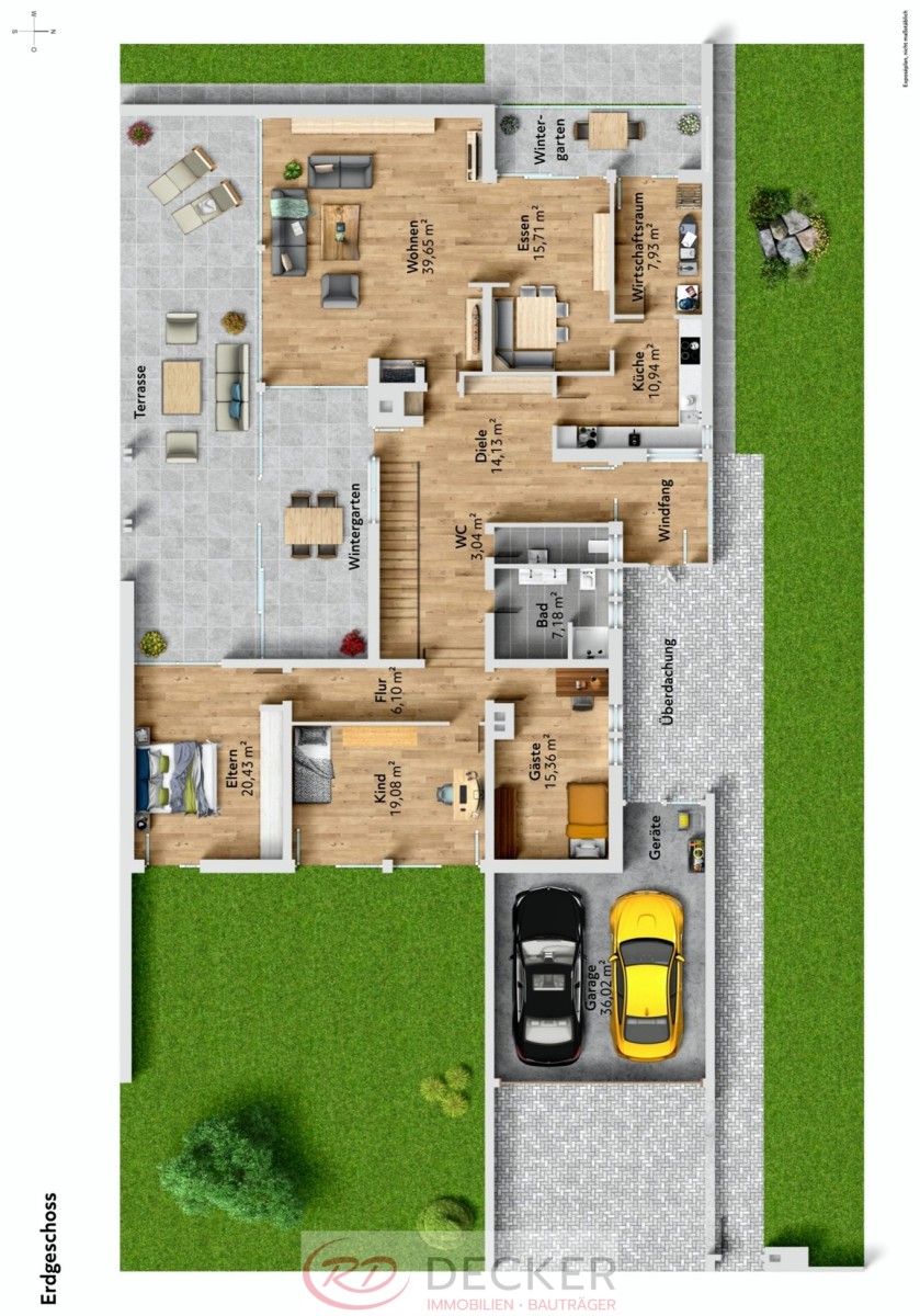 Von der Garage gelangen Sie dank einer Überdachung trockenen Fußes direkt ins Haus.
