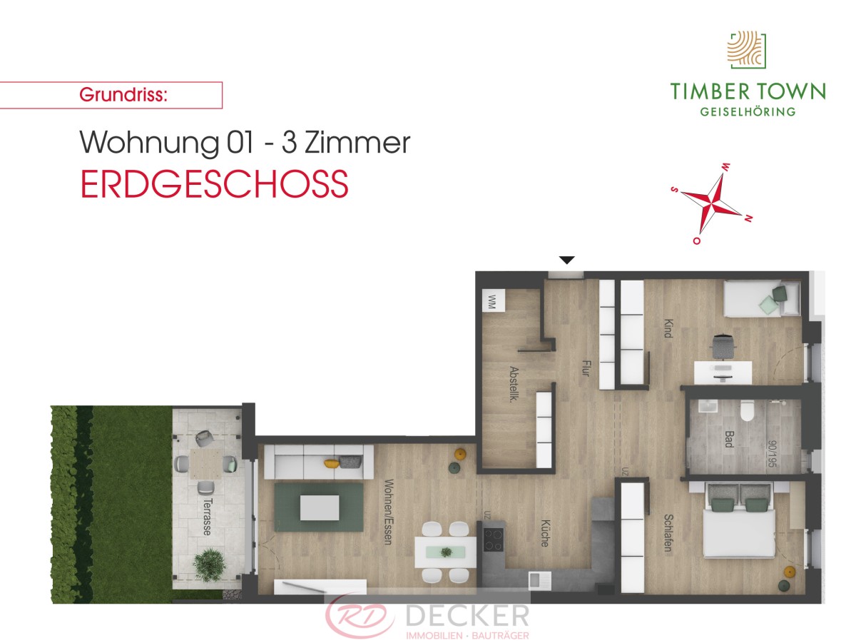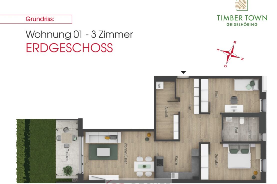 Diese moderne und großzügige 3-Zimmer-Wohnung im 1.OG des Neubauprojekts Timber Town Geiselhöring bietet optimalen Wohnkomfort in ruhiger, naturnaher Umgebung – perfekt für Paare oder kleine Familien.