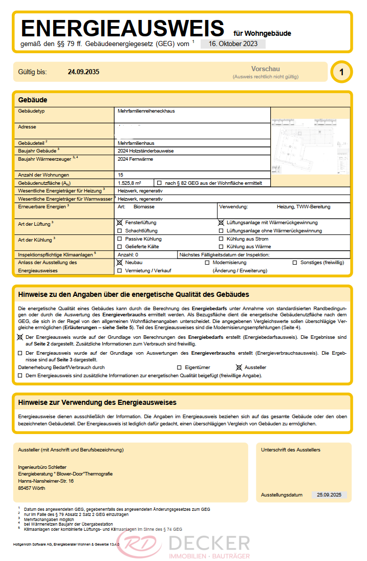 Diese Erdgeschosswohnung eignet sich ideal für Paare, kleine Familien oder anspruchsvolle Singles, die modernes Wohnen mit nachhaltiger Technik und gut durchdachtem Raumkonzept verbinden möchten. Die Kombination aus hoher Bauqualität, energiesparender Ausstattung und einer attraktiven Lage macht dieses Objekt zu einer äußerst interessanten Mietgelegenheit. Der Bezug ist ab dem 01.12.2025 möglich – Haustiere sind hierbei nicht gestattet.