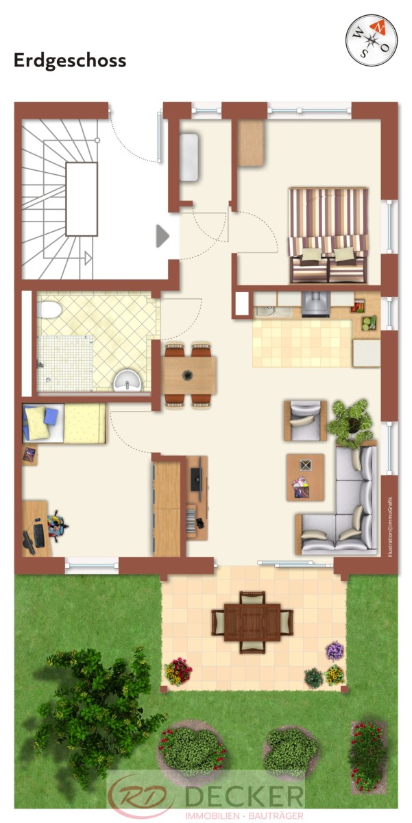 Die moderne Fußbodenheizung und die niedrigen Energiekosten (durch KFW 55) werden Sie begeistern.
